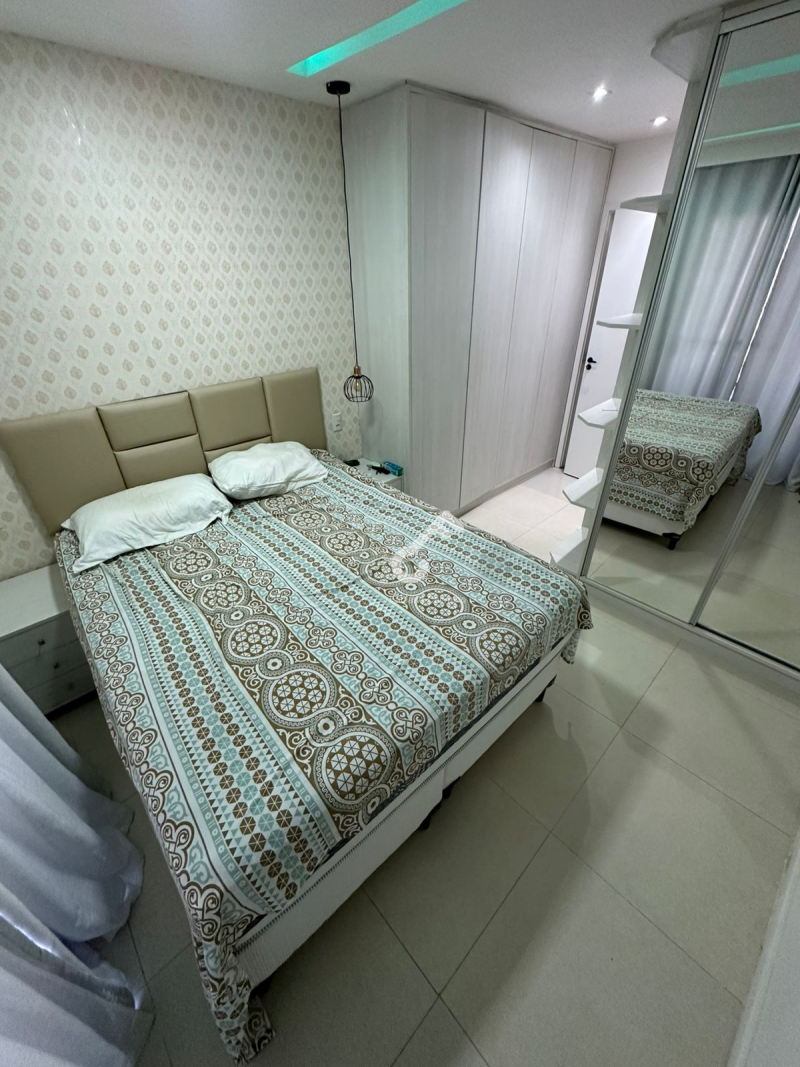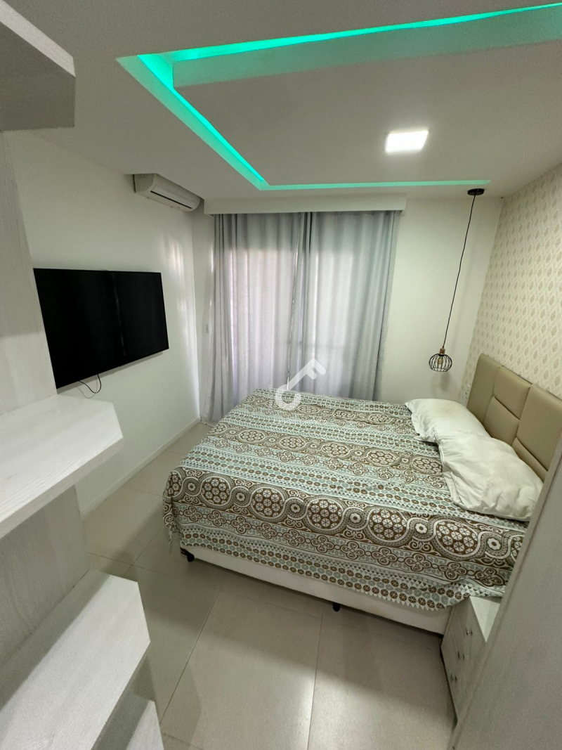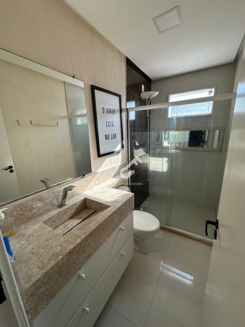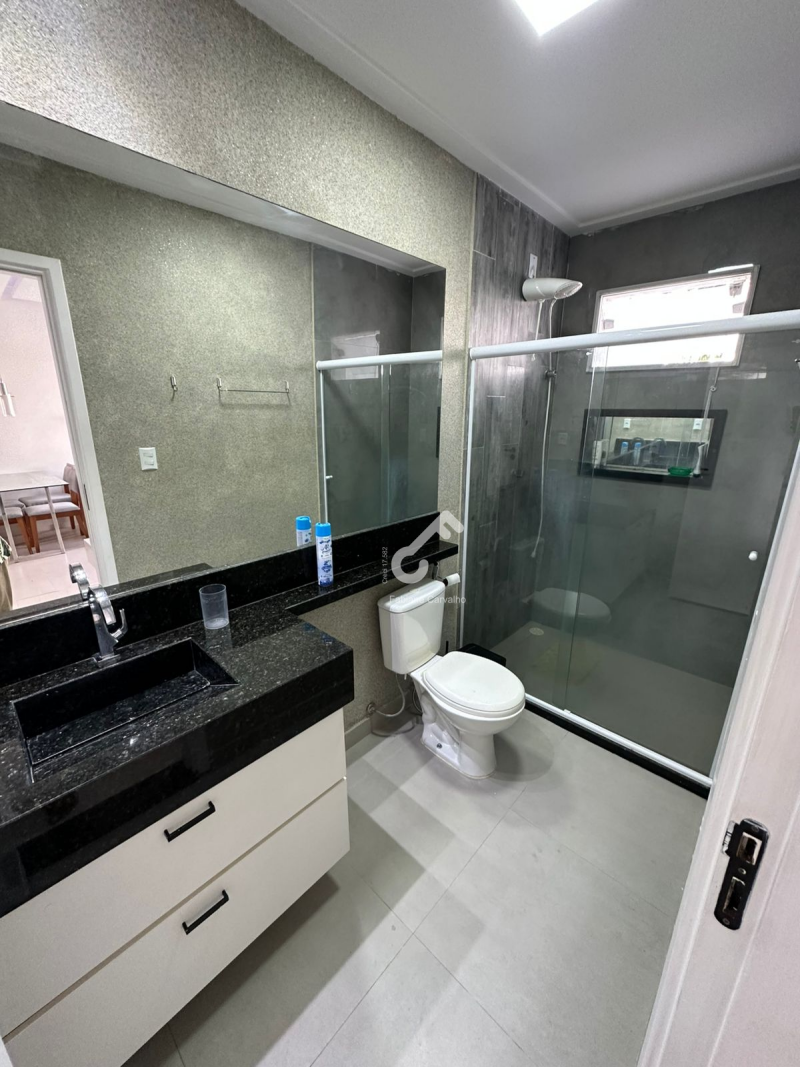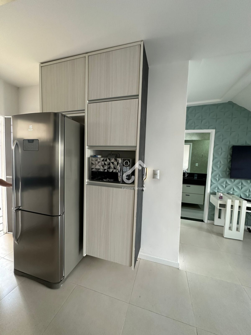 Village MOBILIADO, com ENERGIA SOLAR, duplex com 3 quartos sendo 2 suítes superiores e 1 quarto térreo, varanda, sala ampla, sanitário social, cozinha planejada, área de serviço, área gourmet e garagem para 2 veículos. Área de 94m² construída.