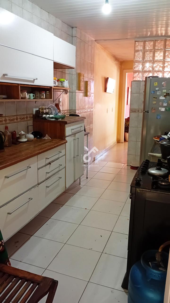 Casa térrea com 3 quartos, sala, cozinha com armários, área de serviço, sanitário social, bastante área nos fundos e garagem. São 362,23m² de área total e 87,40m² de área construída.