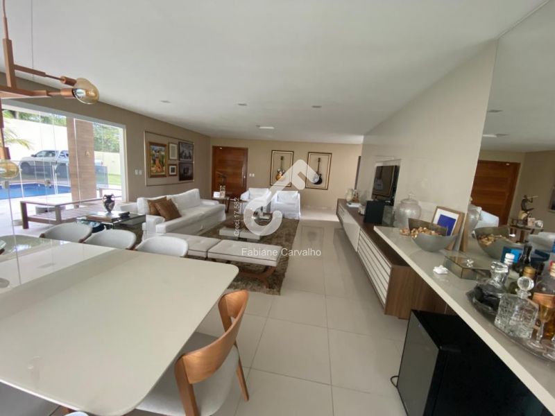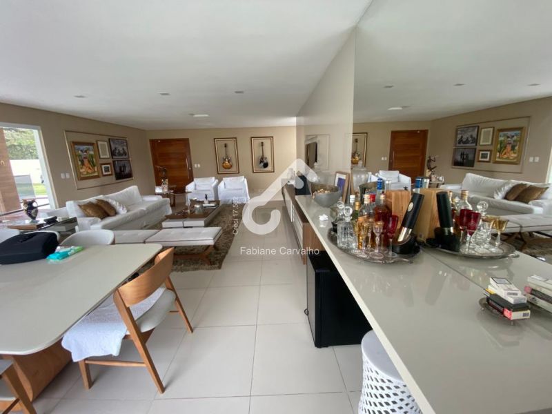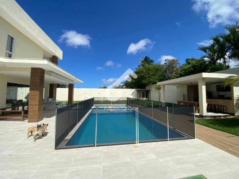 Duplex moderno num conceito aberto em condomínio fechado no melhor de Lauro de Freitas, composto de 5 suítes, sendo 1 térrea reversível para escritório, 4 suítes superiores, sendo 2 com closet sem varanda, 1 com closet e varanda e 1 suíte sem closet e sem varanda, estar íntimo com varanda, lavabo, ar-condicionado, sala em 3 ambientes (estar, jantar e TV), cozinha ampla com armários, área de serviço, 2 depósitos, dependência completa, piscina, área gourmet e garagem. Área total de 900m² e 322,83m² de área construída.